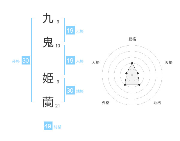 九鬼 姫蘭さんの総格は49画の2点!