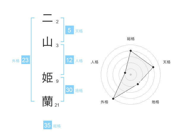 二山 姫蘭さんを姓名の画数から五運を鑑定