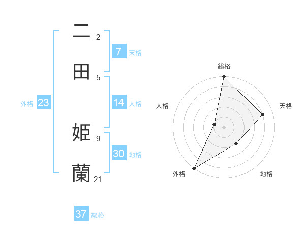 二田 姫蘭さんの総格は37画の5点!