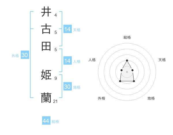 井古田 姫蘭さんの総格は44画の2点!