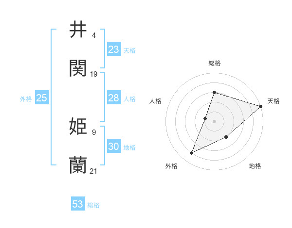 井関 姫蘭さんの天格は23画の5点!