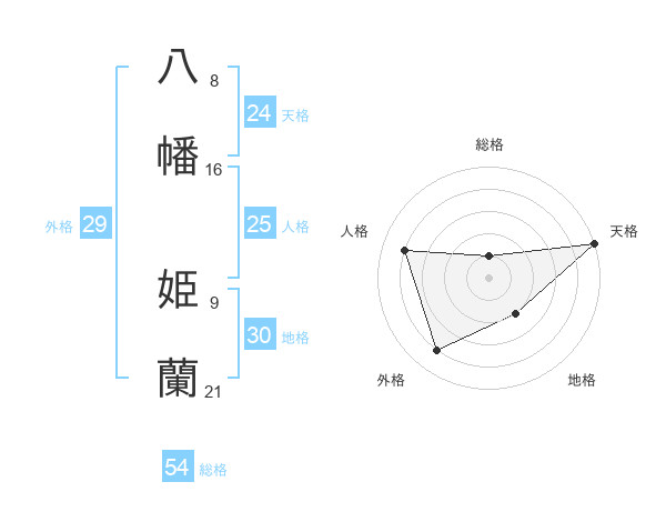 八幡 姫蘭さんを姓名の画数から五運を鑑定