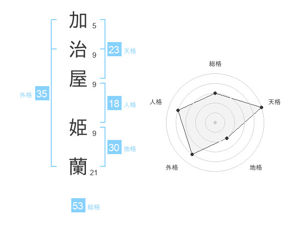 加治屋 姫蘭さんを姓名の画数から五運を鑑定