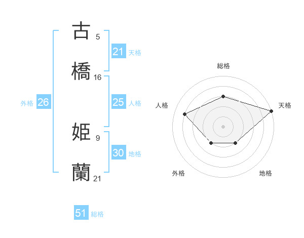 古橋 姫蘭さんの総格は51画の3点!