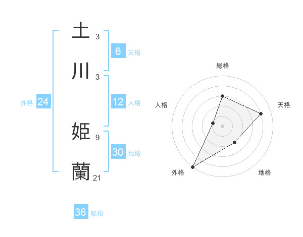 土川 姫蘭さんの天格は6画の4点!