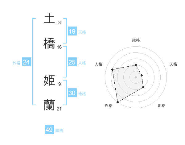土橋 姫蘭さんの外格は24画の5点!