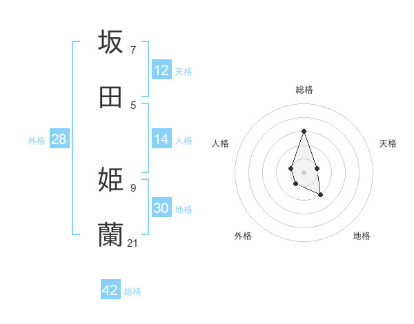 坂田 姫蘭さんの総格は42画の3点!