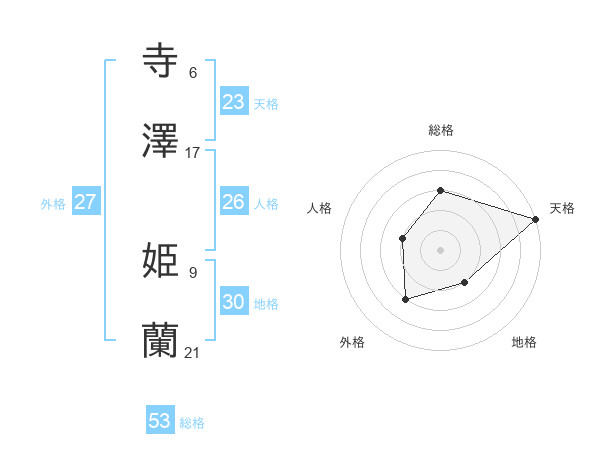 寺澤 姫蘭さんの総格は53画の3点!