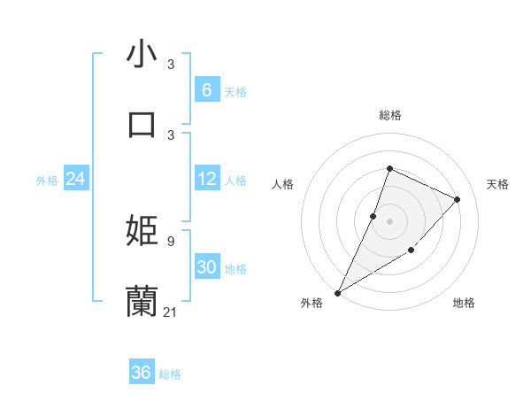 小口 姫蘭さんの外格は24画の5点!