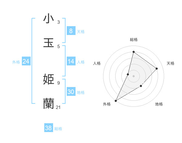 小玉 姫蘭さんを姓名の画数から五運を鑑定