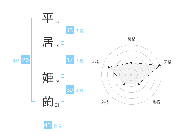 平居 姫蘭さんの天格は13画の5点!