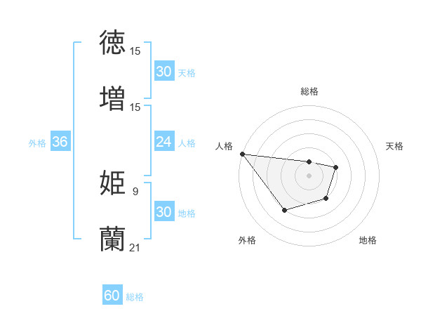 徳増 姫蘭さんの総格は60画の1点!