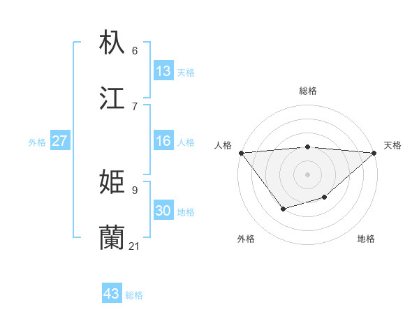 杁江 姫蘭さんの天格は13画の5点!