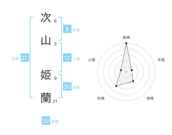 次山 姫蘭さんを姓名の画数から五運を鑑定