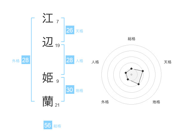 江辺 姫蘭さんの総格は56画の1点!