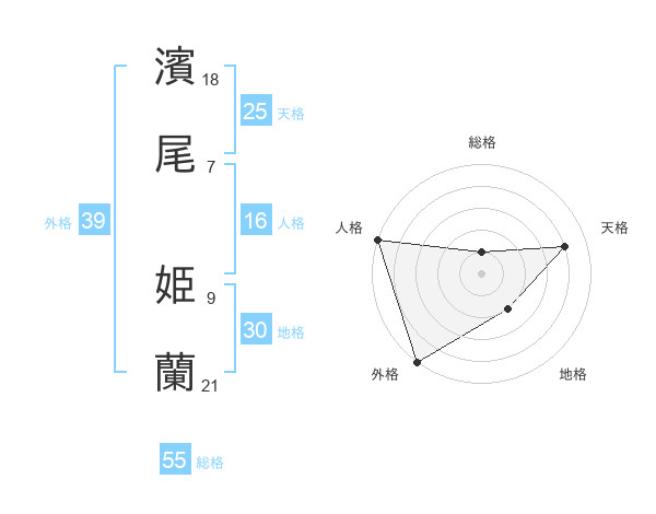 濱尾 姫蘭さんの総格は55画の1点!