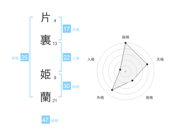 片裏 姫蘭さんを姓名の画数から五運を鑑定