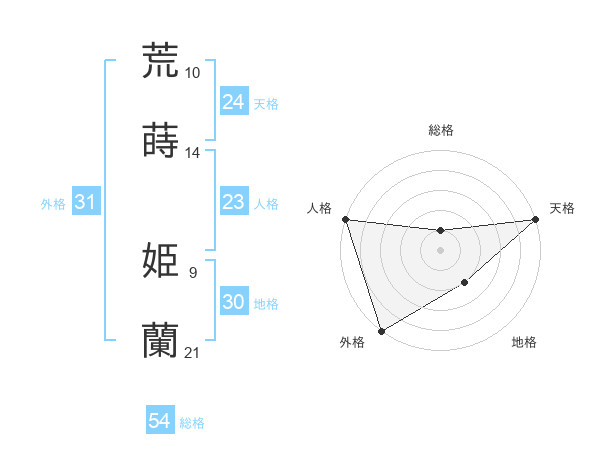 荒蒔 姫蘭さんを姓名の画数から五運を鑑定