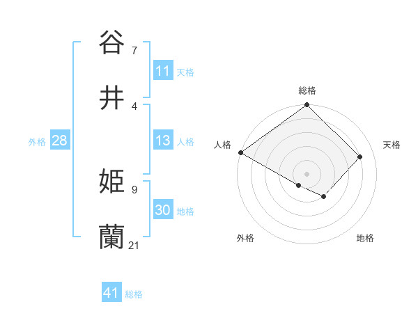 谷井 姫蘭さんを姓名の画数から五運を鑑定