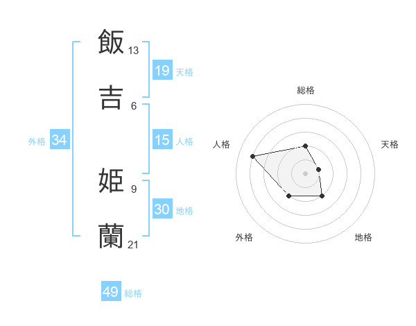 飯吉 姫蘭さんの総格は49画の2点!