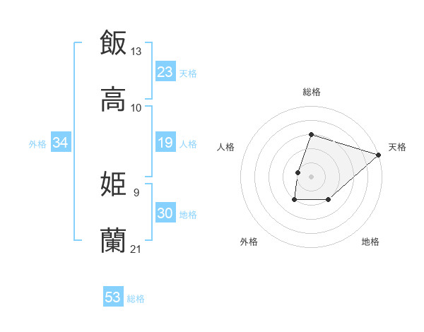 飯高 姫蘭さんの総格は53画の3点!