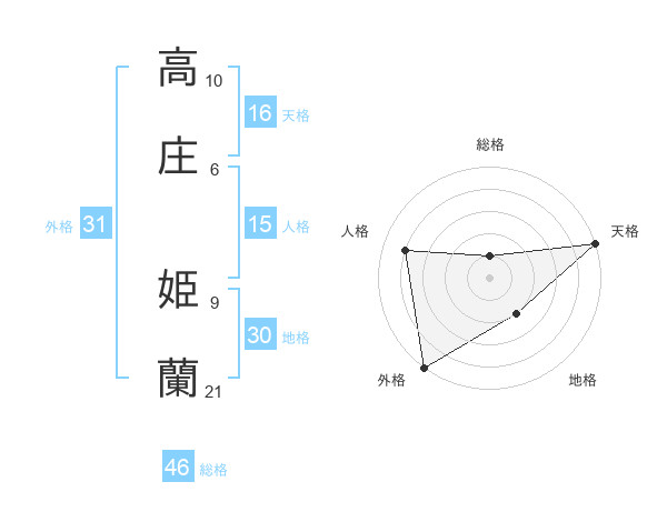 高庄 姫蘭さんの外格は31画の5点!