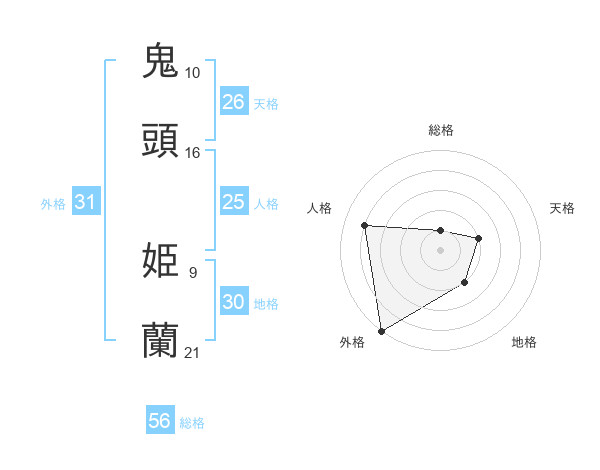 鬼頭 姫蘭さんの総格は56画の1点!