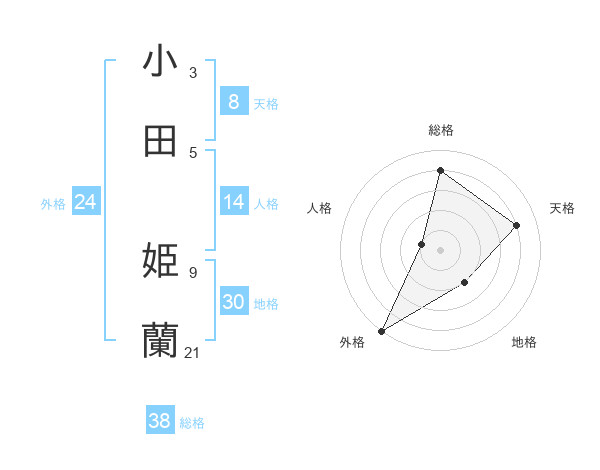 小田 姫蘭さんを姓名の画数から五運を鑑定