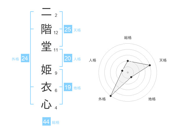 二階堂 姫衣心さんの天格は25画の4点!