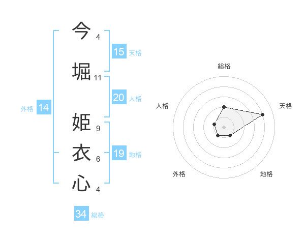 今堀 姫衣心さんを姓名の画数から五運を鑑定
