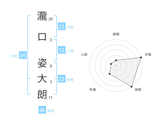 瀧口 姿大朗さんを姓名の画数から五運を鑑定