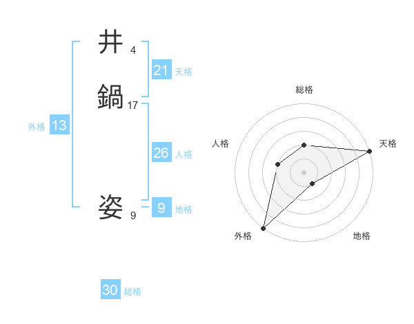 井鍋 姿さんを姓名の画数から五運を鑑定