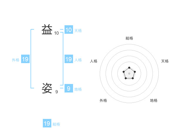 益 姿さんの総格は19画の1点!