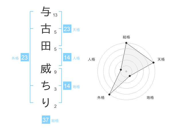 与古田 威ちりさんを姓名の画数から五運を鑑定
