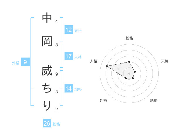 中岡 威ちりさんを姓名の画数から五運を鑑定