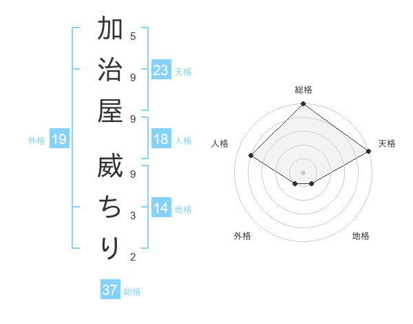 加治屋 威ちりさんを姓名の画数から五運を鑑定