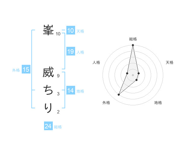 峯 威ちりさんを姓名の画数から五運を鑑定