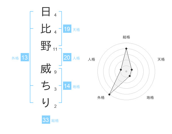 日比野 威ちりさんを姓名の画数から五運を鑑定