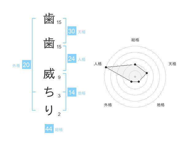 歯歯 威ちりさんの総格は44画の2点!