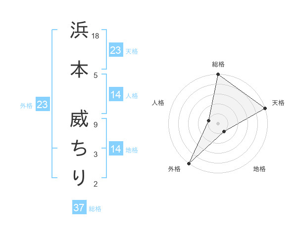 浜本 威ちりさんを姓名の画数から五運を鑑定