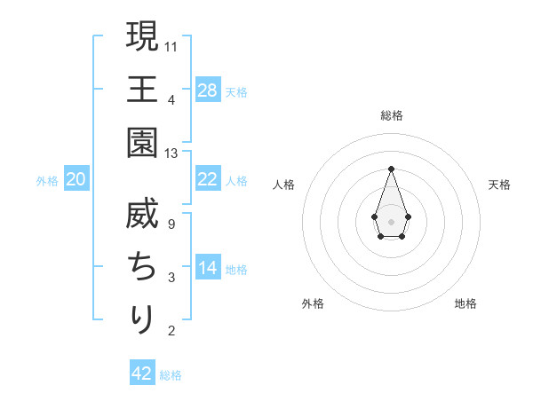 現王園 威ちりさんを姓名の画数から五運を鑑定