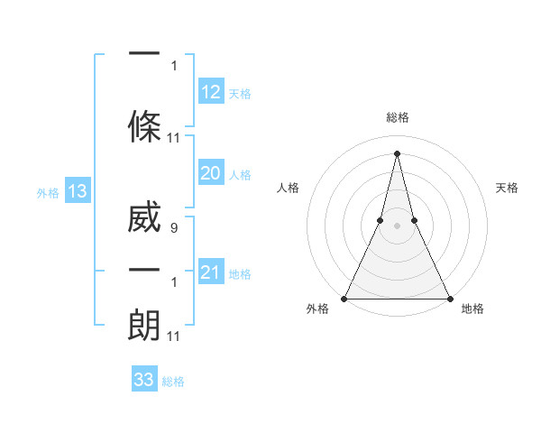 一條 威一朗さんを姓名の画数から五運を鑑定