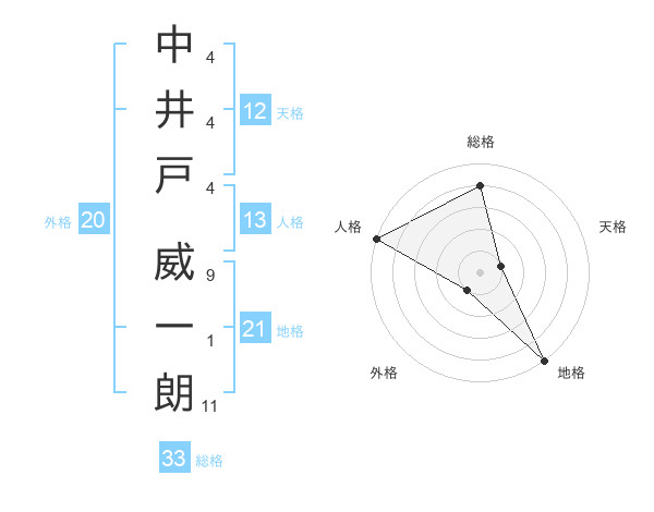 中井戸 威一朗さんを姓名の画数から五運を鑑定
