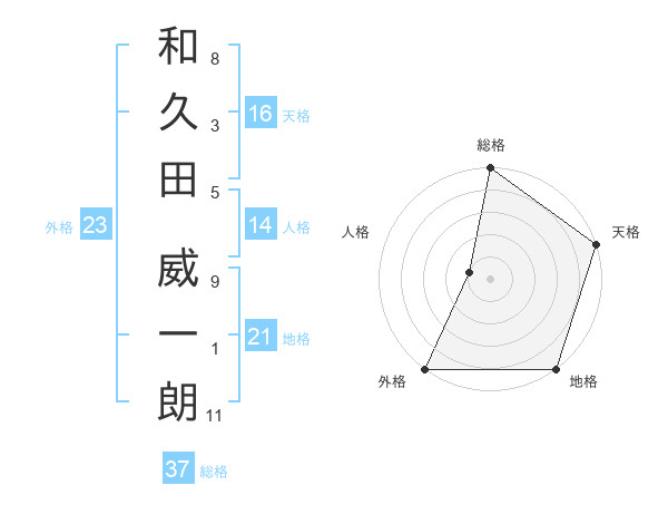 和久田 威一朗さんを姓名の画数から五運を鑑定
