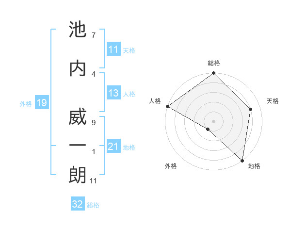池内 威一朗さんの総格は32画の5点!