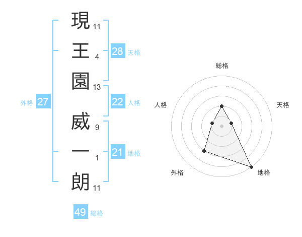 現王園 威一朗さんを姓名の画数から五運を鑑定