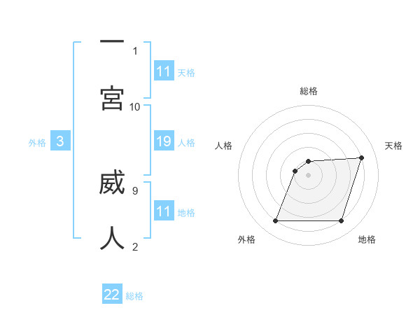 一宮 威人さんの総格は22画の1点!