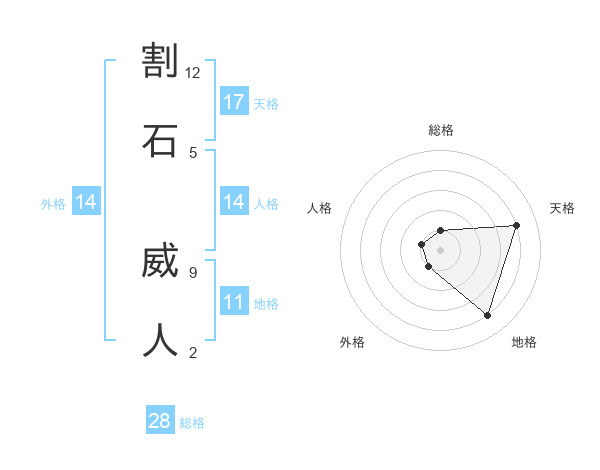 割石 威人さんの総格は28画の1点!