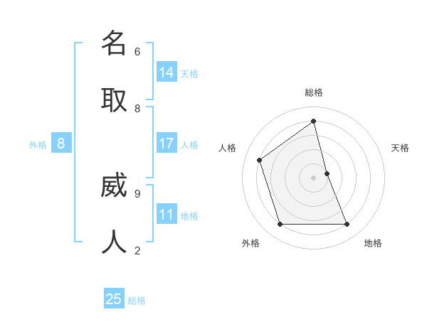 名取 威人さんの総格は25画の4点!