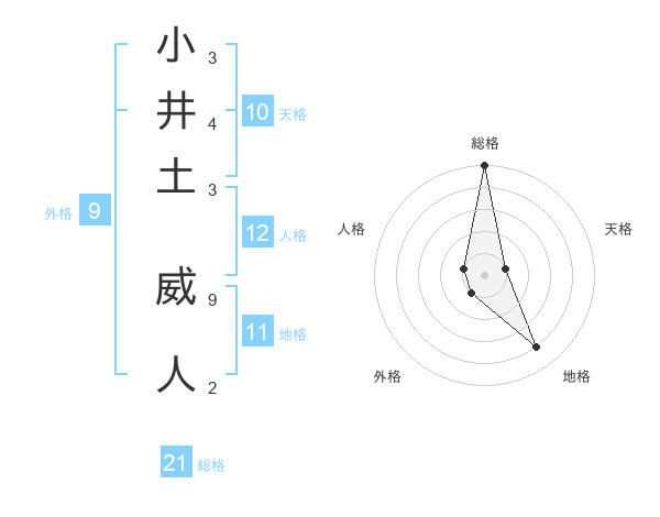 小井土 威人さんの総格は21画の5点!